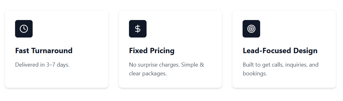Professional, mobile-friendly websites designed to help small businesses get more calls, bookings, and customers.